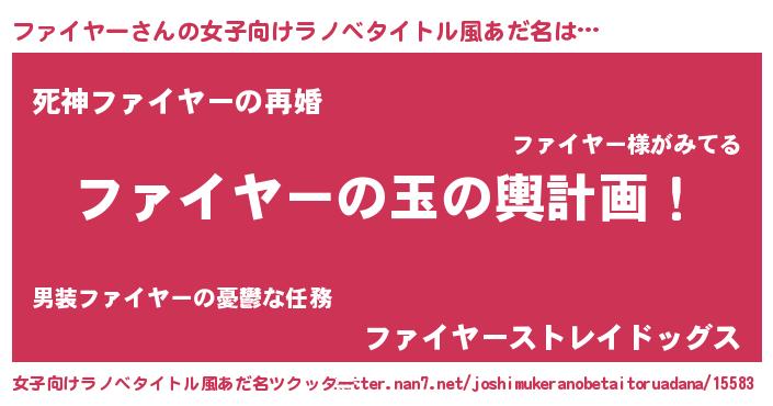 | 男性向けラノベタイトル風あだ名 | 『転生したらファイヤーだった件』 |