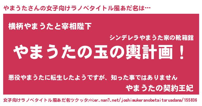 | ヘコむあだ名 | 『やまうた(小並感)』『やまふぇ~』 |