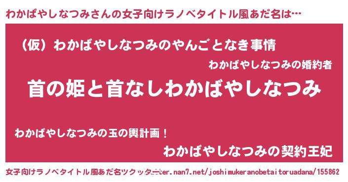 | 胡散臭い通販商品みたいなあだ名 | 『必ず成功するブレスレット…その名も「わかばやしなつみ」』 |
