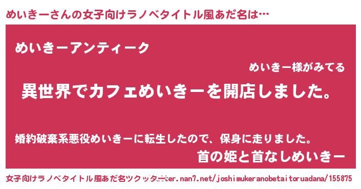 | 意味不明あだ名 | 『永久保存めいきー』『自称めいきー』 |