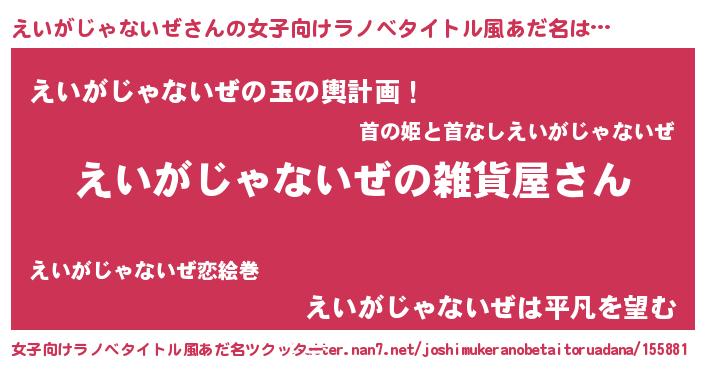 | 男性向けラノベタイトル風あだ名 | 『やはりえいがじゃないぜの青春ラブコメはまちがっている 』 |