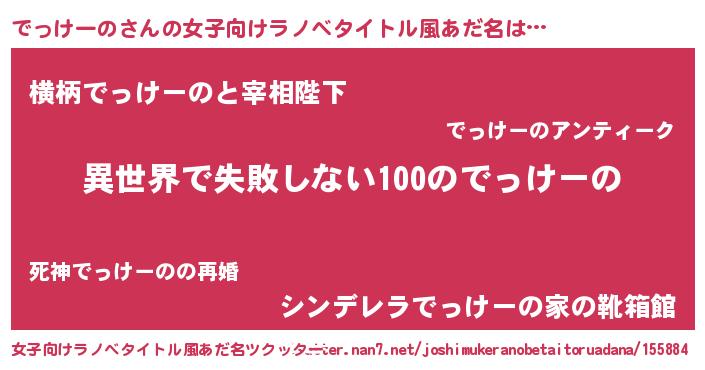 | 男性向けラノベタイトル風あだ名 | 『でっけーのという概念が存在しない退屈な世界 』 |