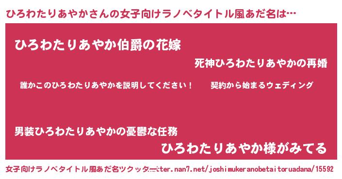 | 胡散臭い通販商品みたいなあだ名 | 『億万長者になれる水晶球…その名も「ひろわたりあやか」』 |