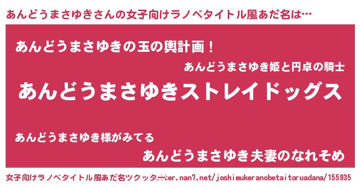 | 男性向けラノベタイトル風あだ名 | 『Re:あんどうまさゆきから始める異世界生活』 |