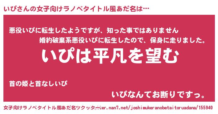 | 胡散臭い通販商品みたいなあだ名 | 『信頼と実績のサプリメント…その名も「いぴ」』 |