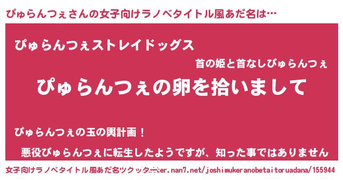 | 意味不明あだ名 | 『とにかく怪しいぴゅらんつぇ』 |