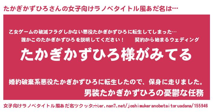 | 意味不明あだ名 | 『とにかく怪しいたかぎかずひろ』 |