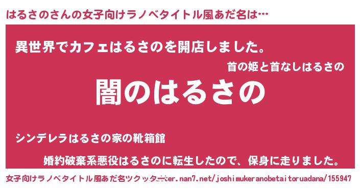 | 意味不明あだ名 | 『自称はるさの』『永久保存はるさの』 |