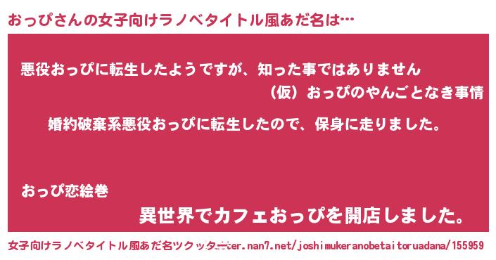 | 男性向けラノベタイトル風あだ名 | 『オッピスレイヤー』『おっぴの憂鬱』 |