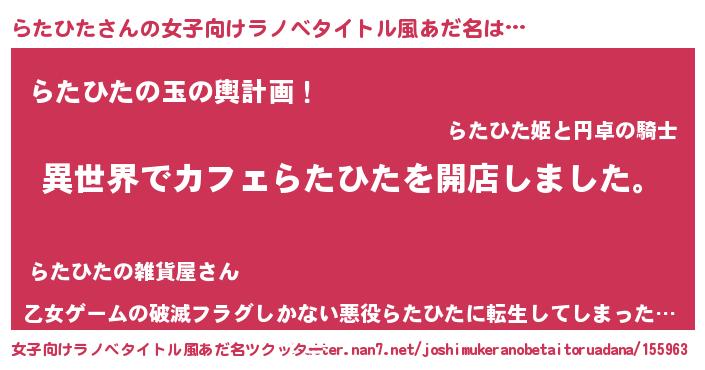 | ヘコむあだ名 | 『らたひた(小並感)』『らたにゅー』 |
