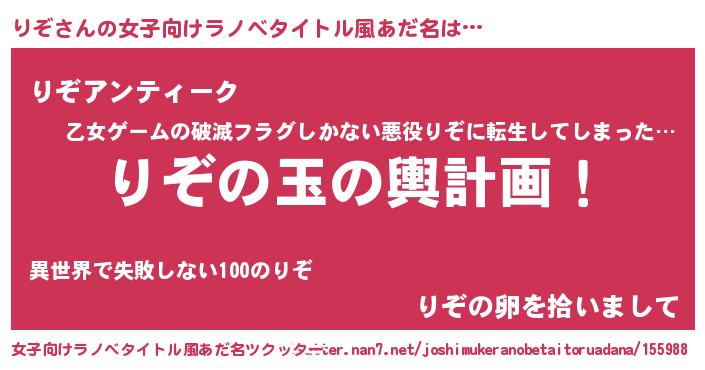 | ヘコむあだ名 | 『りぞ太郎』『りぞ(遠い目)』『豆乳』 |