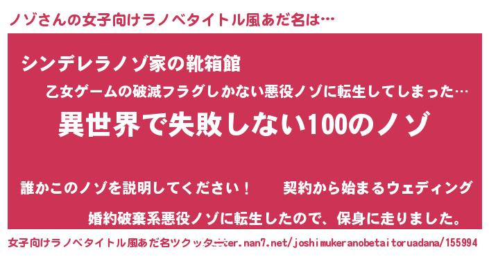 | 男性向けラノベタイトル風あだ名 | 『ノゾという概念が存在しない退屈な世界 』 |