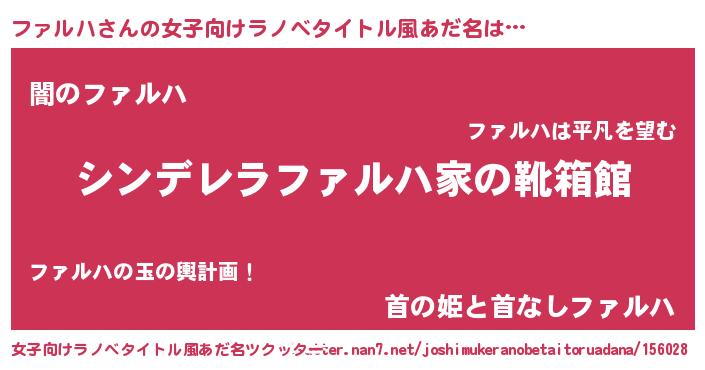 | 意味不明あだ名 | 『自称ファルハ』『なめこ科ファルハ属』 |