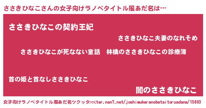 | 男性向けラノベタイトル風あだ名 | 『魔弾の王とささきひなこ』 |