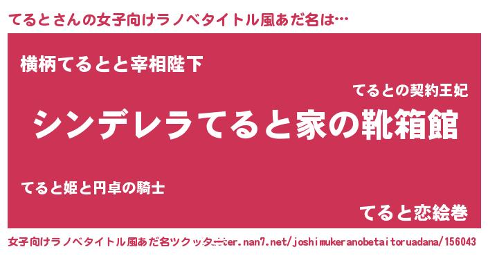 | 男性向けラノベタイトル風あだ名 | 『緋弾のテルト』『てるとの憂鬱』 |