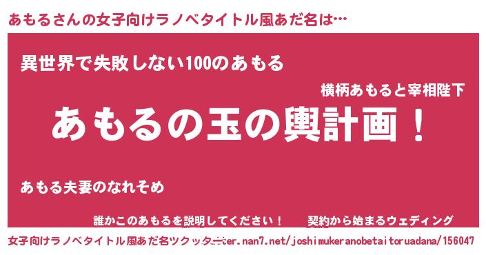 | 男性向けラノベタイトル風あだ名 | 『転生したらあもるだった件』 |