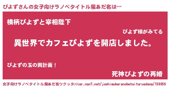 | 男性向けラノベタイトル風あだ名 | 『誰もが恐れるあのぴよずが、ぼくの専属メイドになるようです。』 |