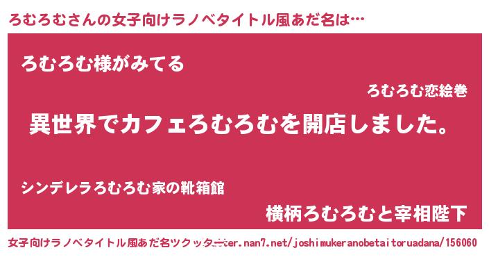 | 男性向けラノベタイトル風あだ名 | 『誰もが恐れるあのろむろむが、ぼくの専属メイドになるようです。』 |