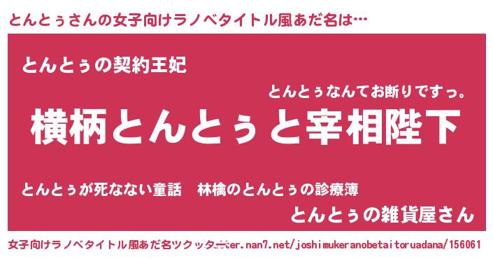 | 胡散臭い通販商品みたいなあだ名 | 『来世でも幸せになれる水素水…その名も「とんとぅ」』 |