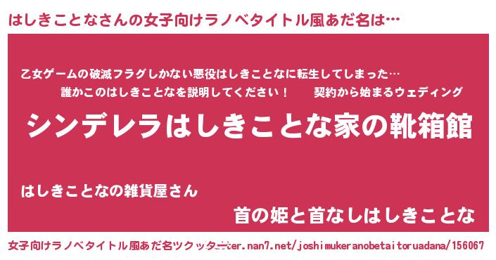 | 男性向けラノベタイトル風あだ名 | 『緋弾のハシキコトナ』 |