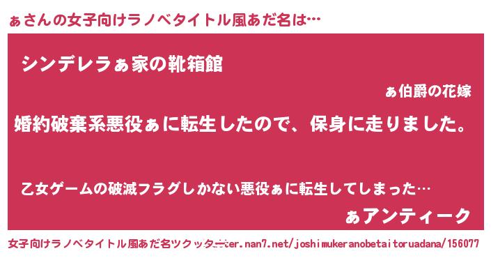 | 男性向けラノベタイトル風あだ名 | 『ァスレイヤー』『冴えないぁの育てかた』 |