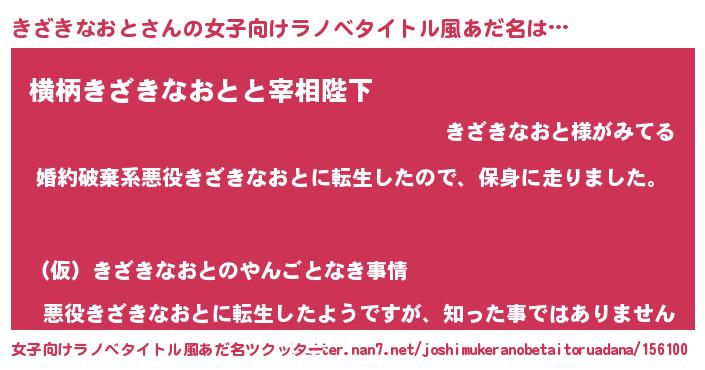 | 男性向けラノベタイトル風あだ名 | 『キザキナオトスレイヤー』 |