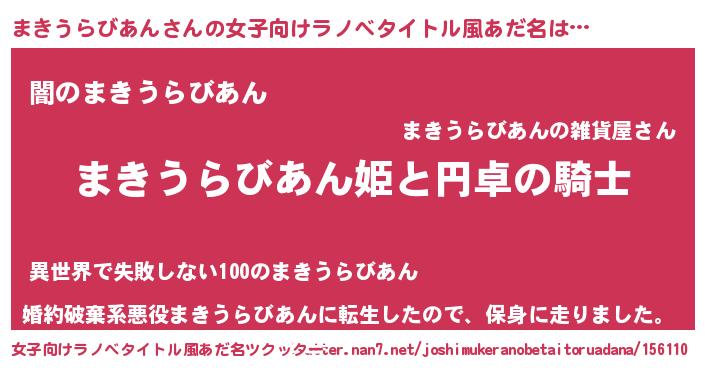 | 男性向けラノベタイトル風あだ名 | 『マキウラビアンアートオンライン』 |