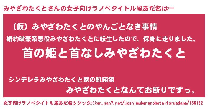 | 肩書あだ名 | 『みやざわたくとマネージャー』 |