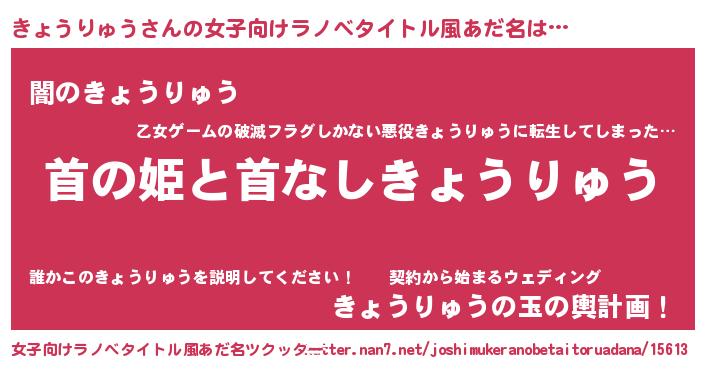 | 男性向けラノベタイトル風あだ名 | 『はたらくきょうりゅうさま!』 |