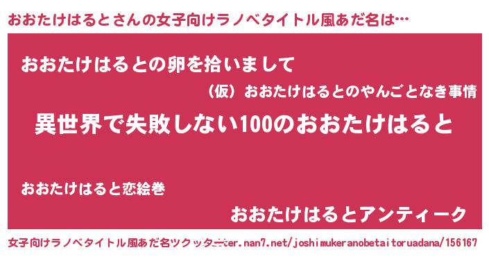 | 男性向けラノベタイトル風あだ名 | 『おおたけはるとという概念が存在しない退屈な世界 』 |