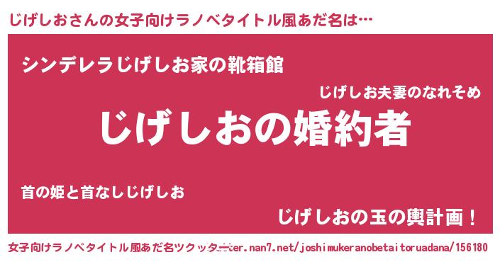 | 男性向けラノベタイトル風あだ名 | 『うちの娘の為ならば、俺はもしかしたらじげしおも倒せるかもしれない。』 |