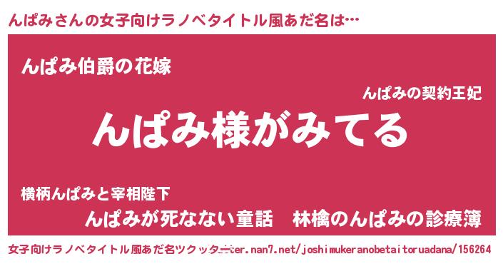 | 男性向けラノベタイトル風あだ名 | 『んぱみの嫁は女の子じゃないと思った?』 |