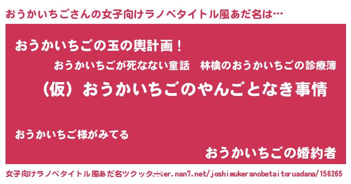 | 男性向けラノベタイトル風あだ名 | 『おうかいちごの憂鬱』 |