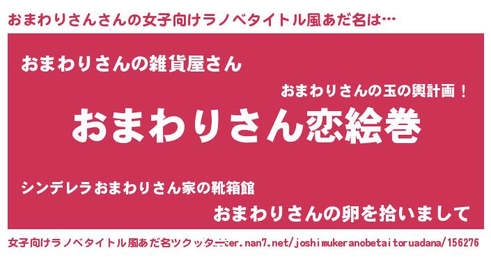 | 男性向けラノベタイトル風あだ名 | 『ノーゲーム・ノーオマワリサン』 |