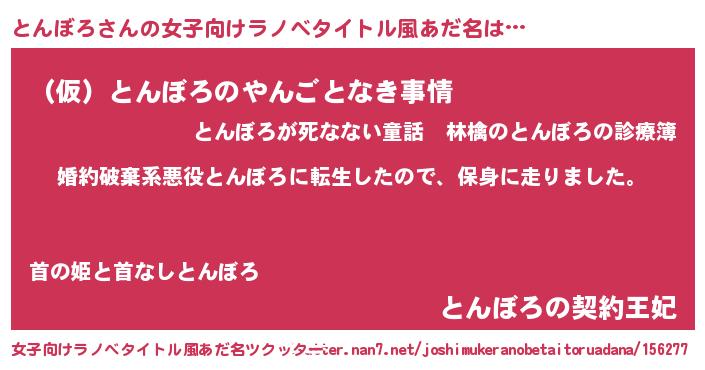 | ヘコむあだ名 | 『とんふぇ~』『とんぼろ(笑)』 |