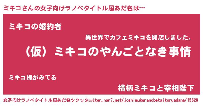 | 男性向けラノベタイトル風あだ名 | 『ミキコの憂鬱』 |