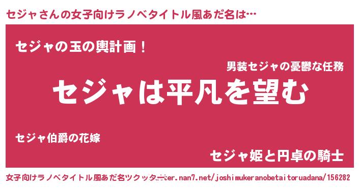 | 男性向けラノベタイトル風あだ名 | 『ダンジョンにセジャを求めるのは間違っているだろうか』 |