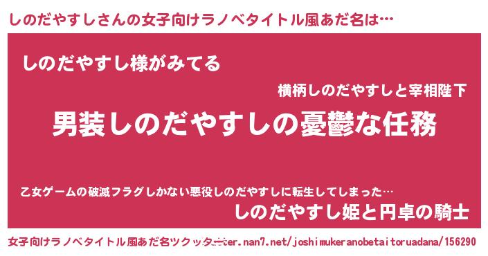 | 胡散臭い通販商品みたいなあだ名 | 『伝統あるサプリメント…その名も「しのだやすし」』 |