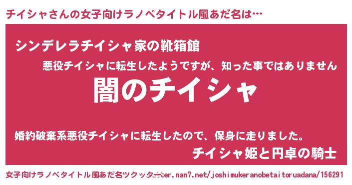 | 男性向けラノベタイトル風あだ名 | 『Re:チイシャから始める異世界生活』 |