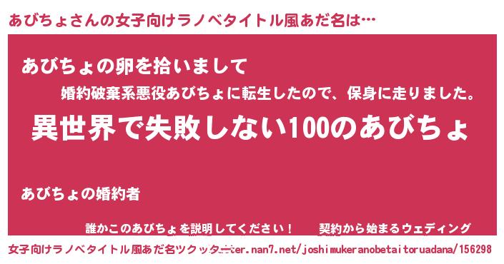 | 男性向けラノベタイトル風あだ名 | 『あびちょという概念が存在しない退屈な世界 』 |