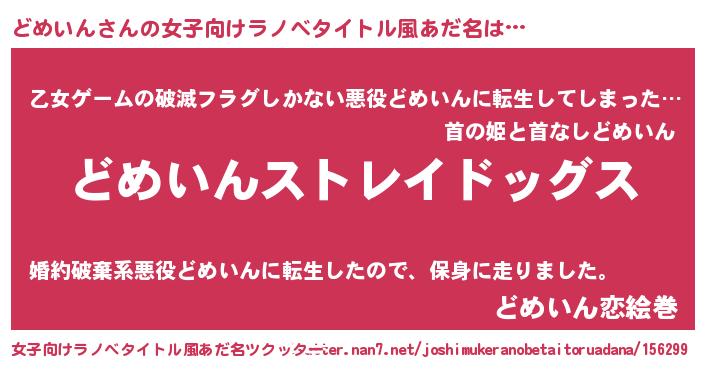 | 男性向けラノベタイトル風あだ名 | 『Re:どめいんから始める異世界生活』 |