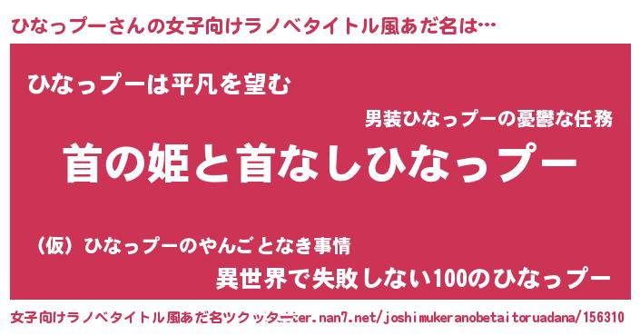 | ポケモン風あだ名 | 『ヒナゴンZ』『ヒヒナップー』 |