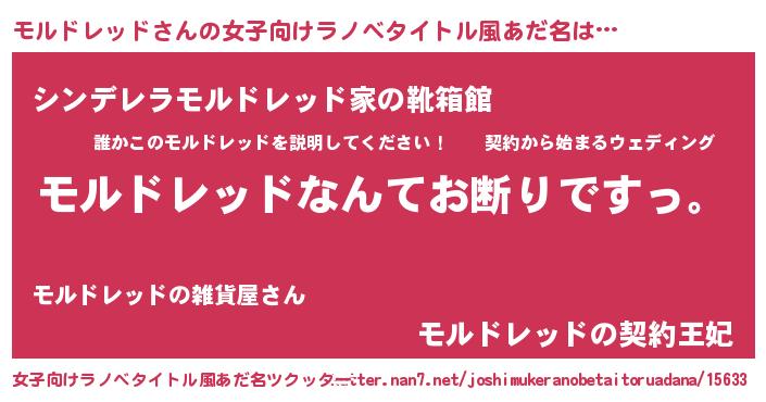 | 意味不明あだ名 | 『自称モルドレッド』 |