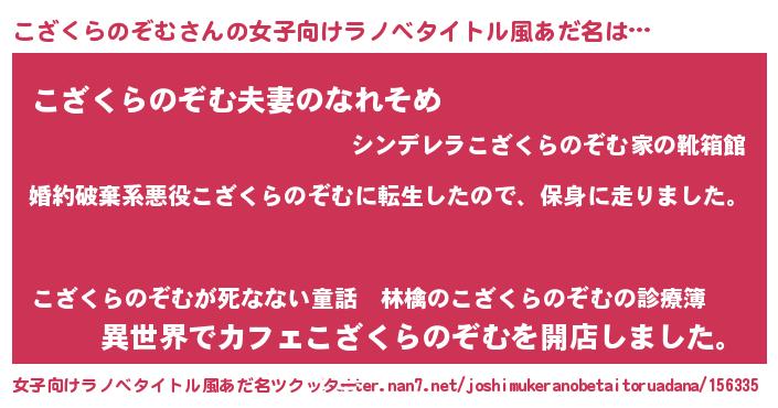 | ヘコむあだ名 | 『こざくらのぞむ(笑)』『こざにー』 |