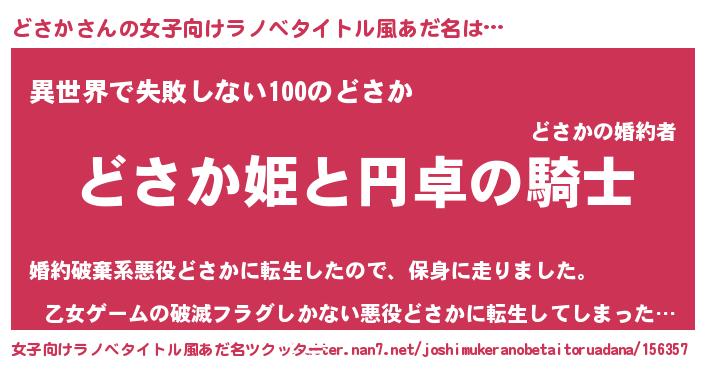 | 男性向けラノベタイトル風あだ名 | 『ドサカアートオンライン』 |