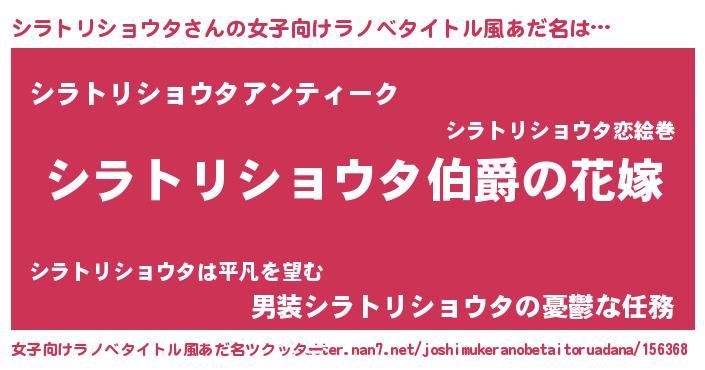 | 欧米人風あだ名 | 『シラトリショウタクリステル』 |
