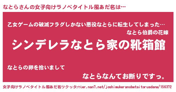 | 意味不明あだ名 | 『住所不定無職なとら(43歳)』『自称なとら』 |