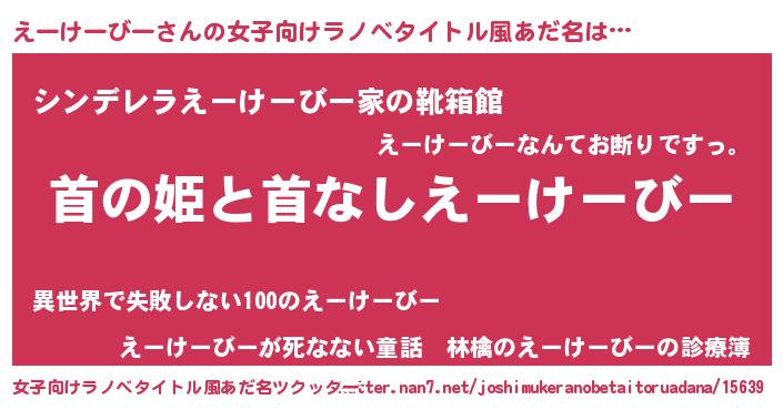 | 男性向けラノベタイトル風あだ名 | 『はたらくえーけーびーさま!』 |