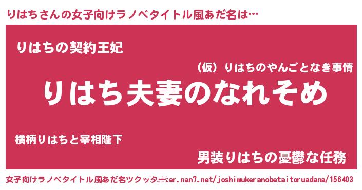 | 男性向けラノベタイトル風あだ名 | 『おまえをオタクにしてやるから、俺をりはちにしてくれ! 』 |