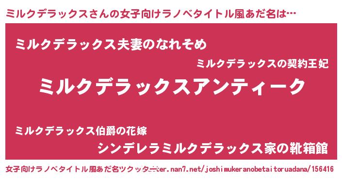 | 男性向けラノベタイトル風あだ名 | 『魔法科高校のミルクデラックス』 |